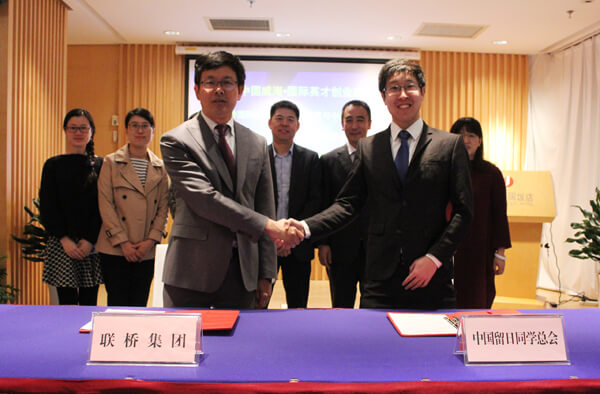 2017年3月5日,2017中國威海·國際英才創(chuàng)業(yè)峰會(huì)海外博士(日本)威海行活動(dòng)開幕。期間,聯(lián)橋集團(tuán)與中國留日同學(xué)總會(huì)簽訂了共建“中日高端人才交流平臺(tái)”合作協(xié)議。聯(lián)橋集團(tuán)董事、副總經(jīng)理于福杰與中國留日同學(xué)總會(huì)副秘書長劉恩璽代表雙方簽字。